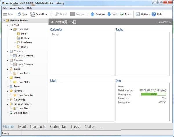 ymDataTraveler!可以连接到Micsoft Outlook或Exchange Server以同步邮件,联系人,任务,约会和备注。
