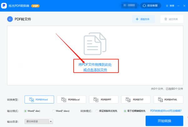 2、点击添加文件, 把需要转换成Word的PDF文件添加到软件转换框里。可添加多个PDF文件批量转换格式。
