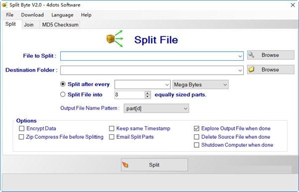 Split Byte是一个文件分割器,它除了可以合并文件也具有许多特,并且完全免费的。它可以用来将大文件分割成较小的部分,同时也可以将其合并在一起!