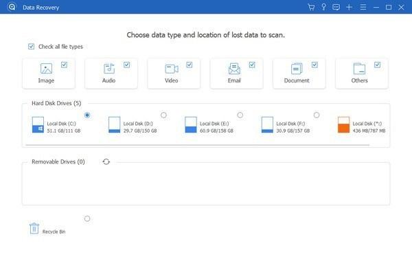 这种强大的数据恢复有能力恢复任何常用的数据类型,如图像、、音频、电子邮件、文档等。选择要还原的数据类型。选择要恢复数据的磁盘驱动器。如果要从可移动驱动器恢复文件,则需要在连接到计算机之后单击“新鲜”。