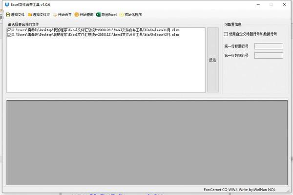 Excel文件合并工具最新版支持多个XLSX格式EXCEL文件合并,自动合并多个EXCEL文件的第一个工作表,并汇总成一张表,可根据所有列标题需要指定需要的列,可汇总标准的EXCEL表格及两行标题并有合并单元格的EXCEL表格。