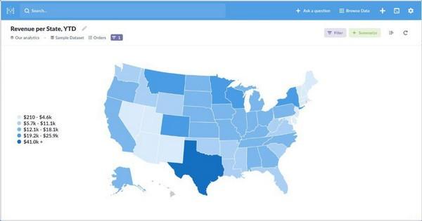Metabase最新版(数据库管理软件)创建了漂亮的图形和图表,并提供了一个易于使用的仪表板,每个人都可以在其中创建、组织和共享异常可视化的数据,它支持大量数据库,包括Postgres、MySQL、Druid、MongoDB、SQLite等等。