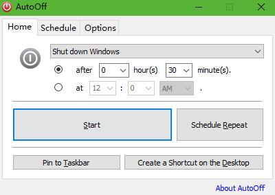 您可以关闭或重新启动,暂停,休眠Windows,关闭显示屏,启动屏幕保护程序,锁定Windows,获取警报,AutoOff免费版可以在指定的时间运行程序与简单的选项。