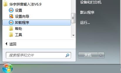 在安装完华宇拼音输入法后,会在开始菜单自动建立输入法菜单,卸载时只需要点击菜单中的卸载程序选项。