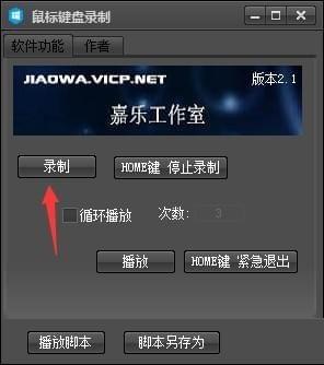 3、点击【播放】按钮即可播放录制的脚本,如果要循环播放,选择“循环播放”选择框,设置循环播放的次数,按键盘“Home”键可以停止;