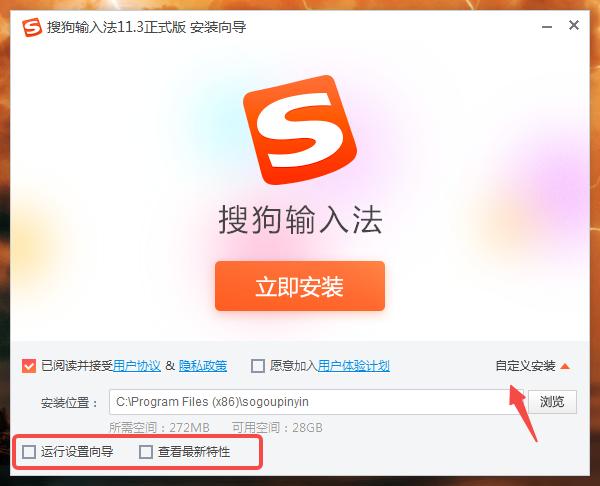 步骤一:在本页面下载搜狗输入法安装包,双击启动