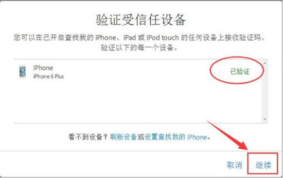 第一步,点击【开始使用】之后,系统会提示需要你用您常用的一台设备验证它的提示,点击【继续】;