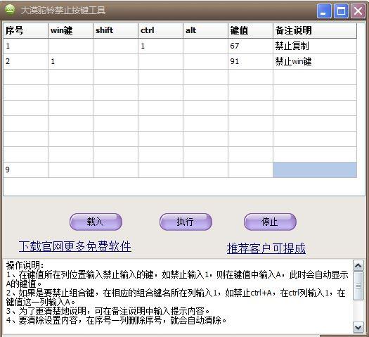 大漠驼铃禁止按键工具可以禁止某些按键或某些组合键,如禁止win键,禁止使用ctrl+C复制。