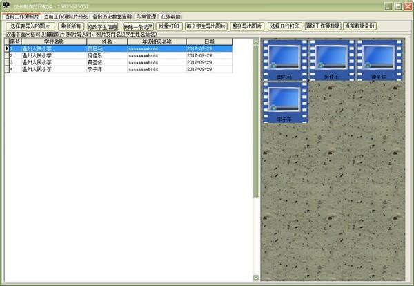 软件作简单,直接导入照片,设置模板和排版 其他作全由软件自动完成,能按每个学生,人员导出模板图片,也可以整张导出图片,用于其它设备或软件使用,也可能直接打印。