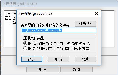 二、在弹出【正在修复】窗口中,单击【浏览】按钮,设置修复好文件的存放路径,在【压缩文件类型】中选择一种修复后的文件格式,设置好之后点击确定按钮,这样WinRAR软件就会开始对受损的压缩文件进行修复。