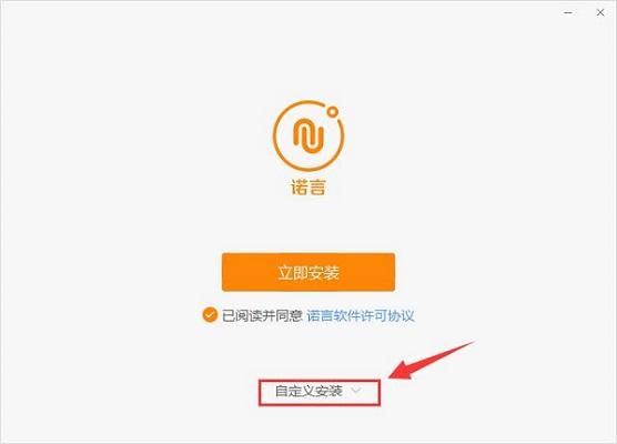 1、下载最新版诺言客户端,双击启动安装包,点开下方的“自定义安装”按钮