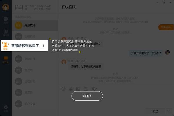 航信开票软件等产品指定在线客服软件,诺言版依托多年财税行业经验,将常见问题合理分类便于用户选择,通过人工答疑、远程协助等多种沟通方式,快速解决各类问题。