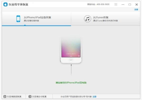 失易得苹果恢复版是一款十分出色的恢复苹果手机数据,失易得苹果恢复版界面美观大方,功能强劲实用,可以帮助您恢复包括照片、、通讯录、书签、提醒和历等,支持几乎所有iOS设备。