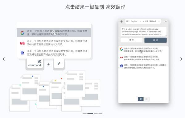 1、多源翻译:支持 Google、有道、百度三种翻译源,择优挑选方便快捷
