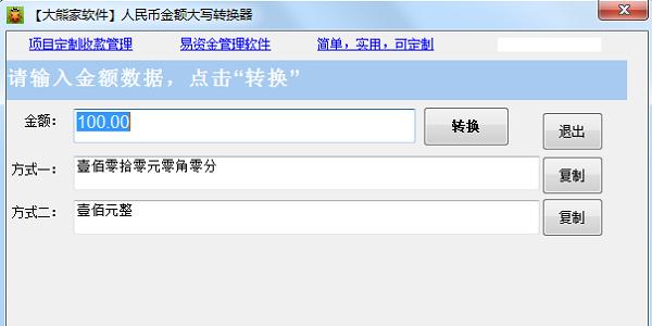 币大小写转换是一款便捷实用的大小写转换工具,币大小写转换作十分简便输入数字即可转换成对应的币大写金额,并且可以转换成两种方式, 只需一键点击,即可复制。可以实现币小写金额转换成大写金额,符合银行财务格式,使用简单,绿色轻巧!