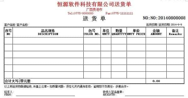 3、系统内默认提供多种送货单格式,并可依据需求免费量身订制