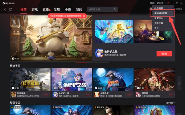 4、进入模拟器主界面,点击右上角图标选择“本地APK安装”按钮。
