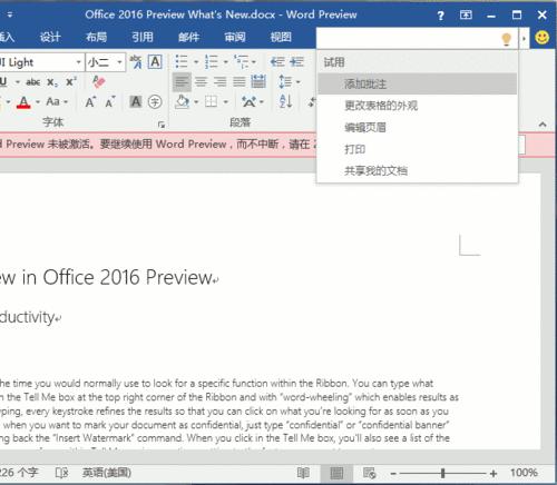 Micsoft Office Word 2016是由微软推出的Word系列软件新版本。Word 2016相比之前的版本优化了阅读模式,更加方便用户阅读,界面更加漂亮美观。Word 2016安装包将通过Micsoft授权产品Office助手(软件大小:4.62MB)下载,请您放心使用。