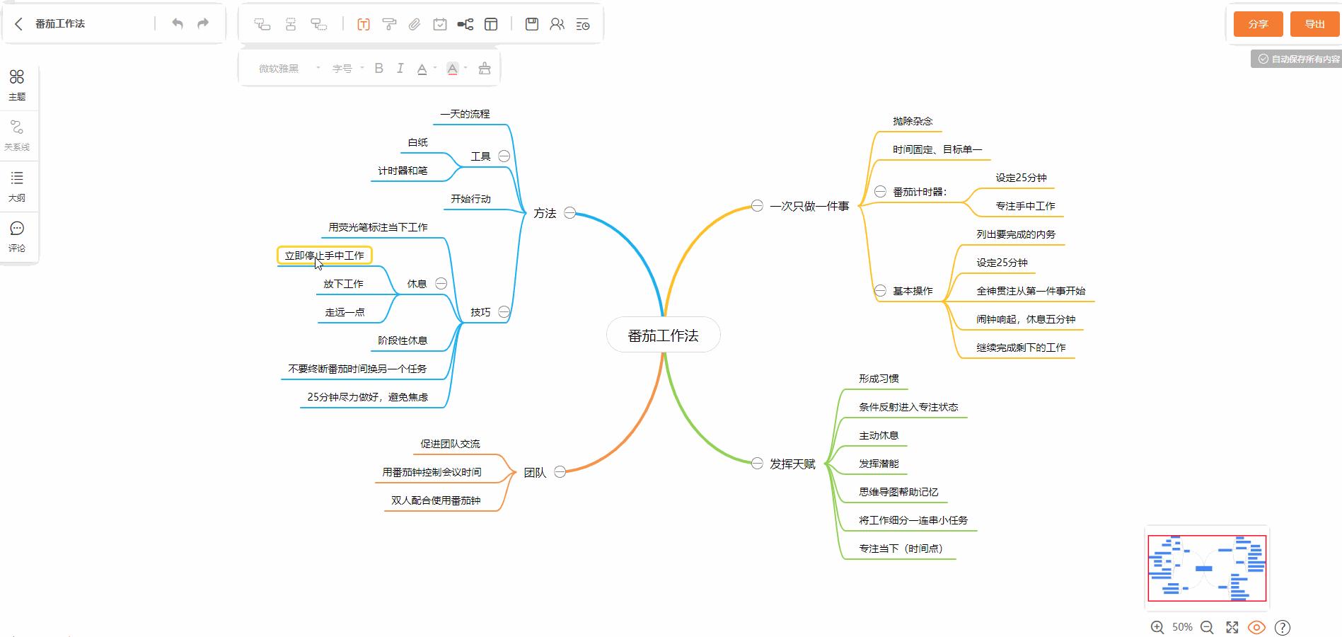 新建脑图会自动生成大纲视图,点击【大纲】即可一键开启大纲模式,查看思维导图更直观。