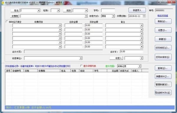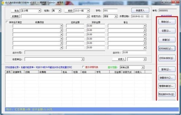 幼儿园收款收据打印软件版是一款十分优秀的收据打印软件,幼儿园收款收据打印软件版界面,支持打印收据和记账管理,提供收据打印,打印预览,自动金额大写等,可满足大家的常所需。