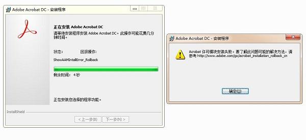 4、在解决上述问题之前,需要说明一下,一般你的电脑里已经安装过Adobe Acbat旧版本或其它Adobe系列产品的话,就很容易出现许可模块安装失败的问题,所以解决办法也是首先移除这些软件,再重新安装Adobe Acbat!