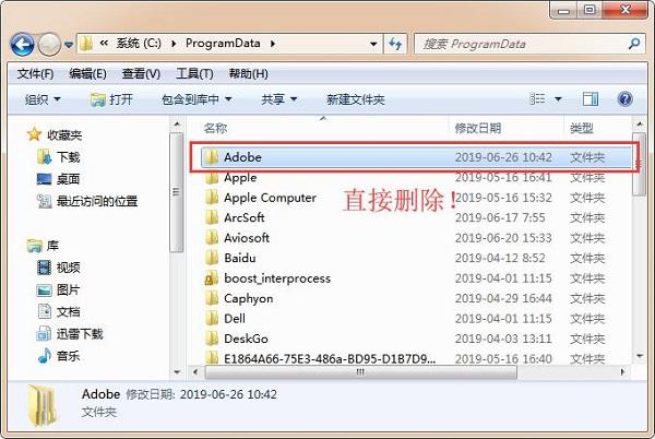 ①找到【C:PgramDataAdobe】文件夹并删除;