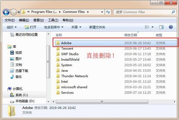 ②找到【C:Pgram Files (x86)Common FilesAdobe】文件夹并删除;