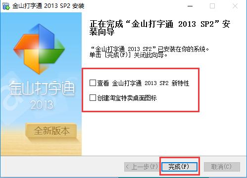 5、安装基本完成,可以查看一下打字通的新特以及创建淘宝特卖桌面目标,最后点击完成按钮。
