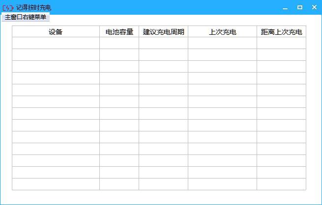 记得按时充电是一款论坛网友制作的分享备忘录软件,随着科技的发达电子设备变得越来越多了,不少设备再拿出来的时候,电池易经充不进电了,这款程序提醒你该给哪些设备充电!