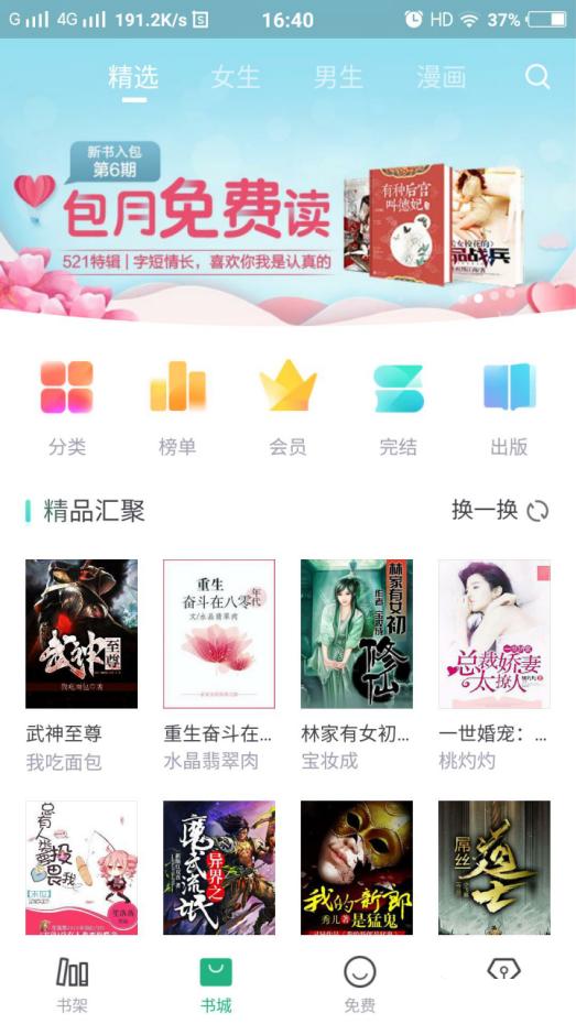 分类:小说分为不同的类型:男生、女生、出版和漫画。每一种下面都有各自的不同的分类,点击喜欢的进行观看即可。