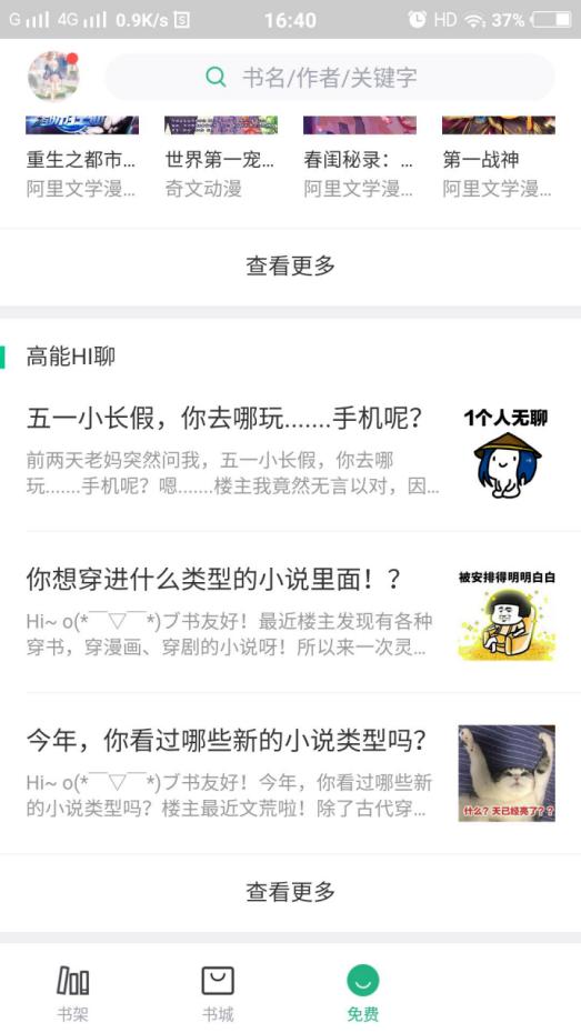 高能:聊一些话题,例如你想要进入哪一个小说或者是假期想要去哪儿玩。选择自己喜欢的话题,进入直接点击评论就可以发表了。