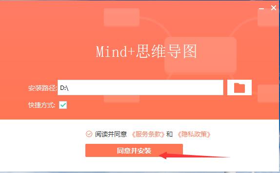 1、 在本站下载mind+思维导图软件包,解压缩后双击“mindyushu_windows_386_v2.5.6_zh.exe”程序开始安装,点击查看“服务条款和隐私政策”,并选择同意