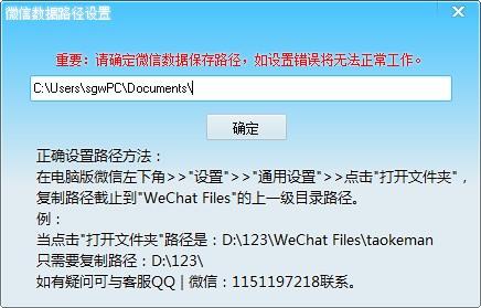 1、第一次运行,请先正确设置微信数据的存放路径。