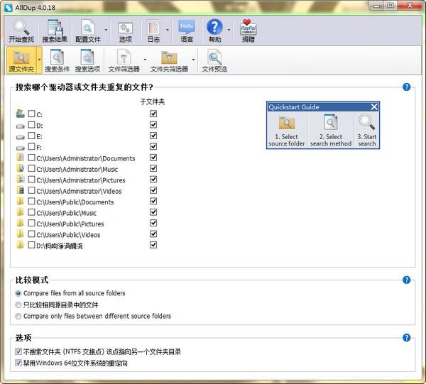 AllDup中文版是一个强大的电脑文件查找工具,AllDup中文版可以检测和移除你计算机上重复了的文件。快速查询算法让它能够快速搜索出重复了的所有文件,包括文字、图片、音乐或者是。