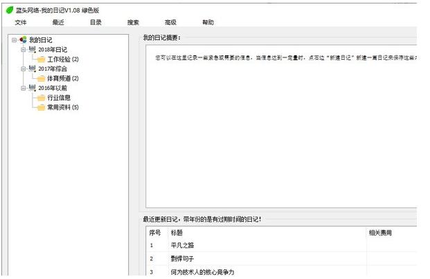 可自行定义记目录,比如:2008工作记、培训计划、学习记录;支持三级目录结构。