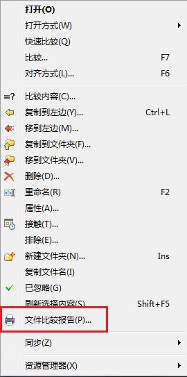步骤二:在文件夹比较会话窗格中,按照个人需求选中某个差异文件,右键单击该文件在展开的菜单中选择“文件比较报告”选项卡。