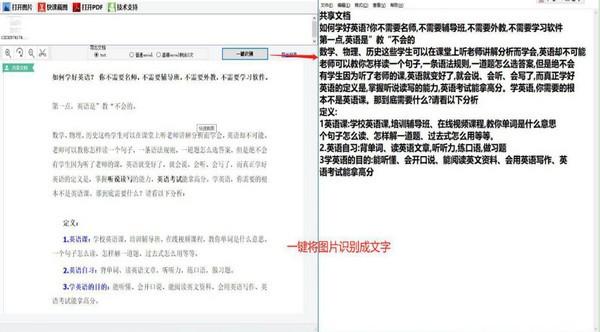 2.截图识别:网上截图转成文字,识别准确率高;