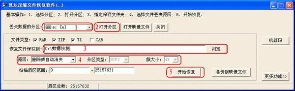 5. 慧龙压缩文件恢复软件最新版支持从磁盘映像文件中恢复压缩文件,因而可完全避免反复扫描对源数据造成损害;软件本身也包含制作映像文件的功能。