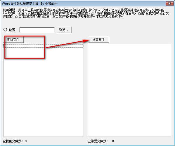 Word文件头批量修复工具电脑版可以自动统计查找到的文件数量。