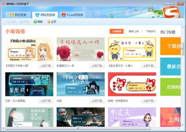 搜狗输入法皮肤盒子绿色版是从搜狗输入法中提取出来的一个小组件。普遍用户都喜欢用搜狗输入法,很大部分的原因是因为搜狗输入法提漂亮的输入法皮肤。换肤的时候也很方便,一键换肤即可搞定。