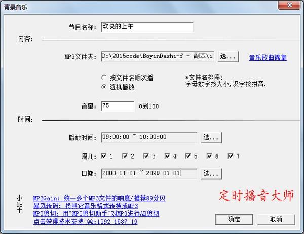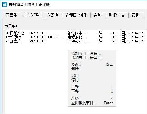 3、一个节目可设置多个播出时间,适用于促销、打铃。
