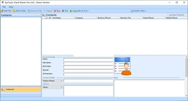 SysTools vCard Viewer P版是一款简单易用的vCard文件查看器,软件旨在帮助您预览vCard联系人,并支持将其导出为txt、csv、pst、vcf、pst、msg、pdf、html等各类常见格式,以便导出联系人,或者将联系人迁移到电子邮件客户端或者其他程序。