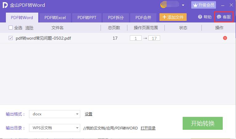 2)如果所有的PDF文件点击转换时都没有反应,请联系PDF转Word右上角客服反馈。