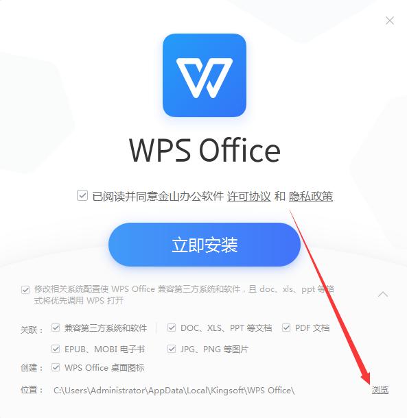 2、我们可以点击“浏览”来更改安装位置
