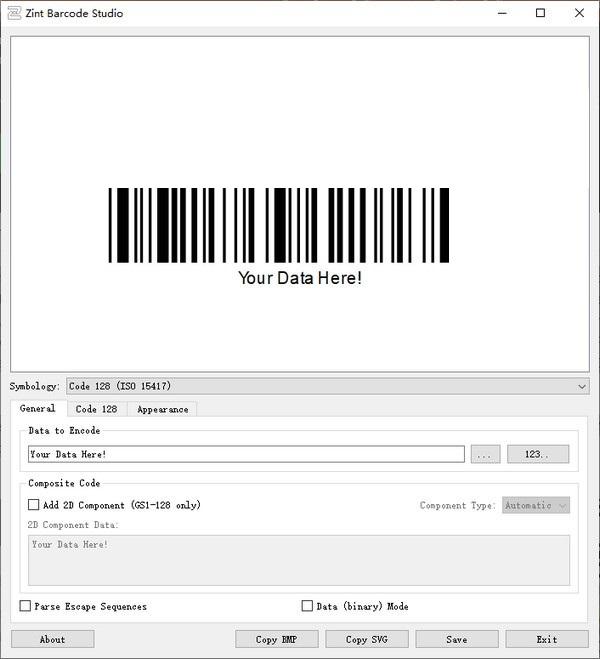 Zint最新版是使用范围比较广泛的条形码生成软件,Zint最新版能够帮助使用者生成多种类型的条形码,支持不管是什么国家的格式都可以用它来生成。Zint版支持自动ECI切换,支持所有Uni code字符,并在GS1模式下自动插入FNC1字符,保存为PNG、BMP、TIF、GIF、PCX、SVG、WMF和EPS,包括CLI,GUI和API,用于从其他应用程序调用。
