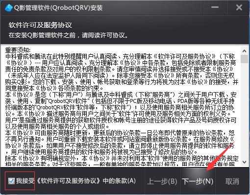 3、查看软件许可及服务协议,选择同意,点击“下一步”