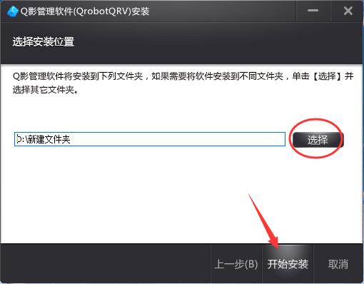 4、软件默认安装位置为“C:/Pgram Files (x86)/QbotQRV”,点击“选择”可以自主选择其他磁盘位置安装,选择好安装位置点击“开始安装”即可