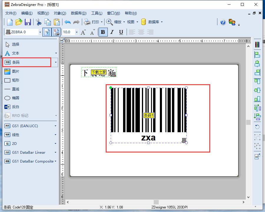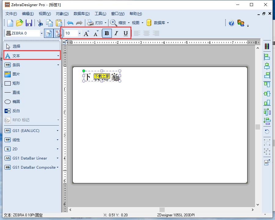 5、使用ZebraDesigner左侧的工具编辑出你需要的标签内容。