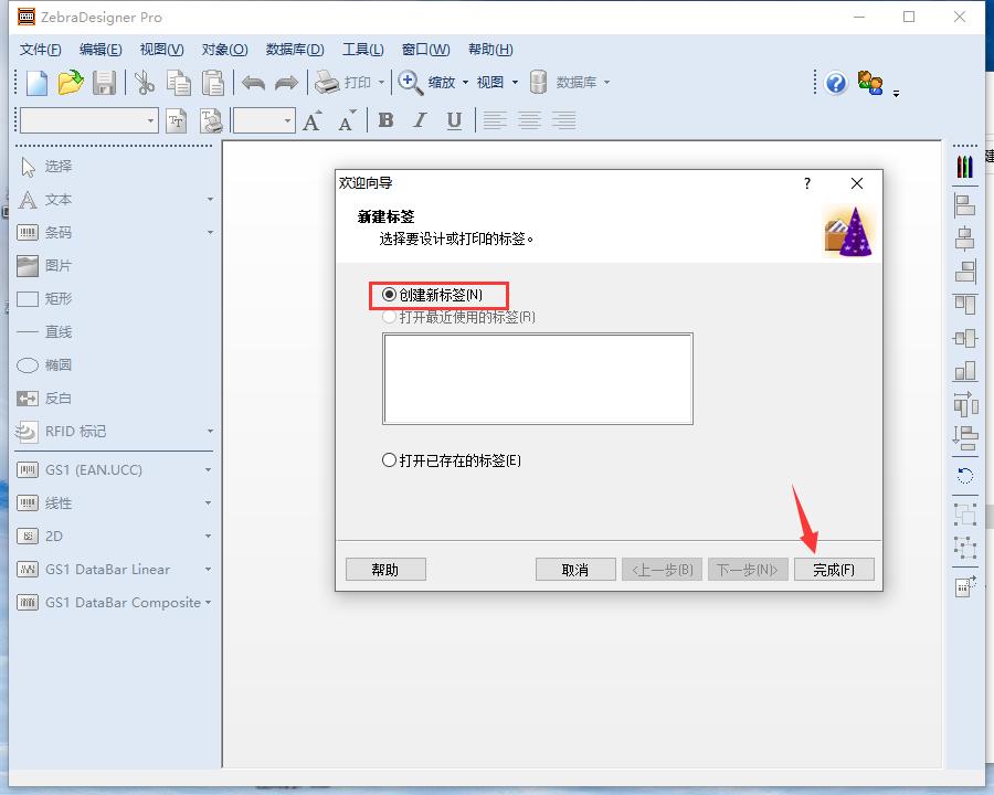 1、双击桌面图标打开安装好的斑马标签编辑打印软件