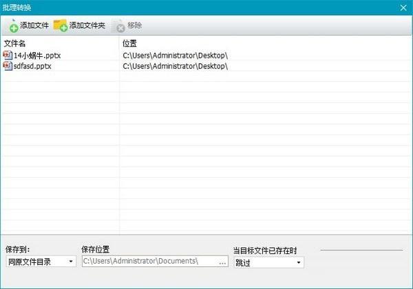 在这量转换窗口里,可以添加多个PPT文件,设置好保存位置等相关选项后,点击右下角“开始转换”按钮,即可以一键将所有的PPT文件转换为PDF文件。
